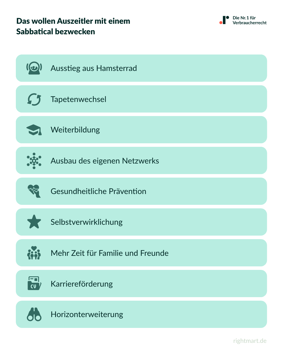 Auch gilt: Wurde Ihnen eine Auszeit vom Job erst einmal genehmigt und entsprechend vertraglich vereinbart, kann Ihr Arbeitgeber keinen Rückzieher mehr machen. Möchten Sie die Absage Ihres Arbeitgebers keinesfalls akzeptieren, bleibt unter Umständen nur eine Möglichkeit: die Kündigung. Das ist natürlich ein drastischer Schritt, der gut überlegt sein will. Verfolgen Sie mit einem Sabbatical jedoch die Idee, mehr Zeit für sich zu haben, überlegen Sie, ob Teilzeitarbeit ggf. eine geeignete Alternative darstellt. Denn: Einer Arbeitszeitreduzierung muss Ihr Arbeitgeber zustimmen – vorausgesetzt, Sie sind länger als ein halbes Jahr im Unternehmen beschäftigt. Alles wichtigen Informationen rund um Ihr Recht auf Teilzeit finden Sie in unserem entsprechenden Ratgeber.